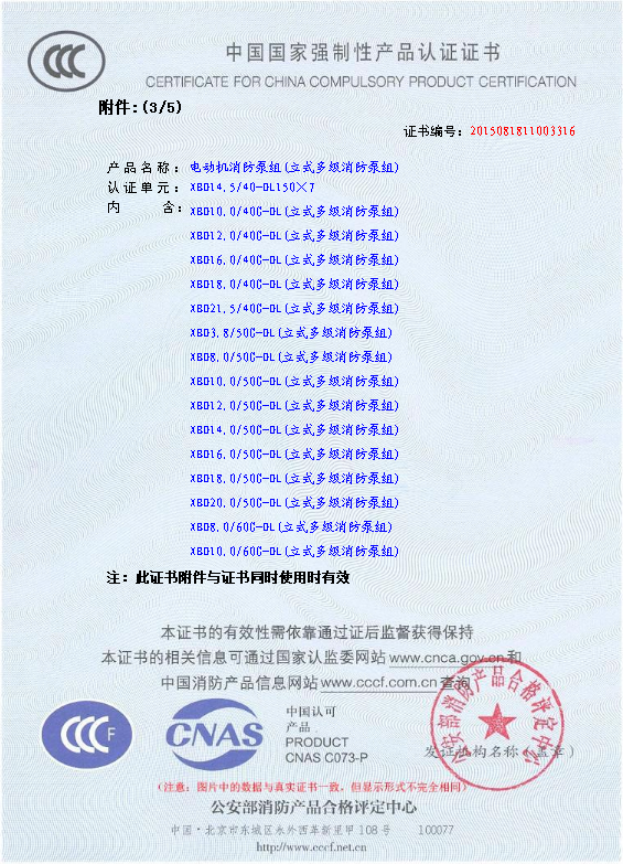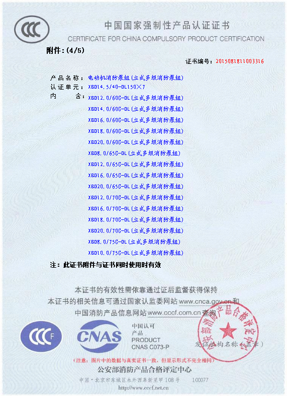 目前,龍巖市九龍水泵制造有限公司有二百多個型號的消防產(chǎn)品通過國家CCCF認(rèn)證,且證書已經(jīng)發(fā)至公司。本批獲證的產(chǎn)品分別是:立式多級消防泵組、多級泵流量50-75L/S,揚(yáng)程38-200m; 隨著新一批CCCF證書的到來,九龍水泵消防產(chǎn)品的證書更加齊全,覆蓋的產(chǎn)品類型也更廣,也是全體九龍人為生命工程制造好產(chǎn)品的體現(xiàn)。未來,龍巖市九龍水泵制造有限公司將繼續(xù)依照國家消防規(guī)定,做好消防產(chǎn)品強(qiáng)制性認(rèn)證及管理工作,維護(hù)產(chǎn)品安全和社會安全。