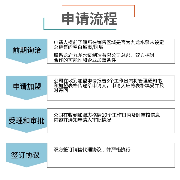 為拓寬公司的銷售渠道,公司誠招各地銷售代理商。我們誠邀世界各地有興趣、有信譽(yù)、有實力、有能力、愿與龍巖九龍水泵制造有限公司共同發(fā)展的單位和個人加盟九龍水泵的營銷網(wǎng)絡(luò),共創(chuàng)美好未來。
