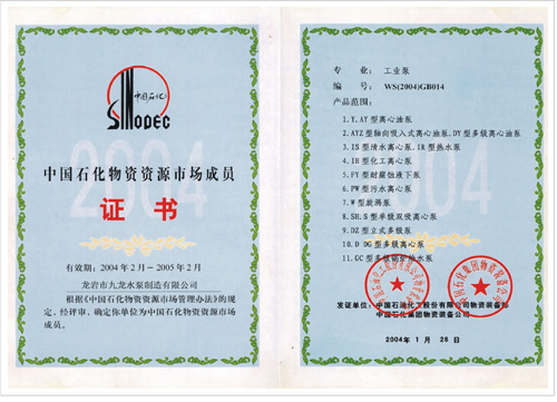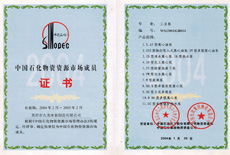 中國石化物資資源市場成員證書