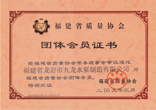 福建省質(zhì)量協(xié)會團(tuán)員會員證書